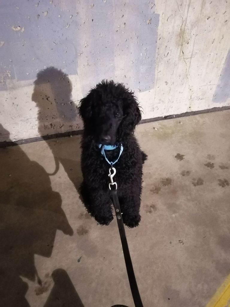He stops a few feet from the door when we get home and sits to wait for the magic door to open again. He sits in front of Mummy to get his leash off.