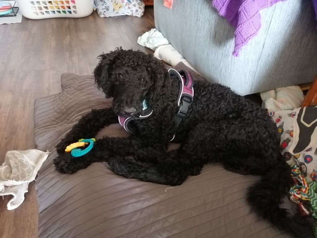 Standard Poodles like to learn new things and they are very active. Except during nap times, Bobby needs something to keep him busy.